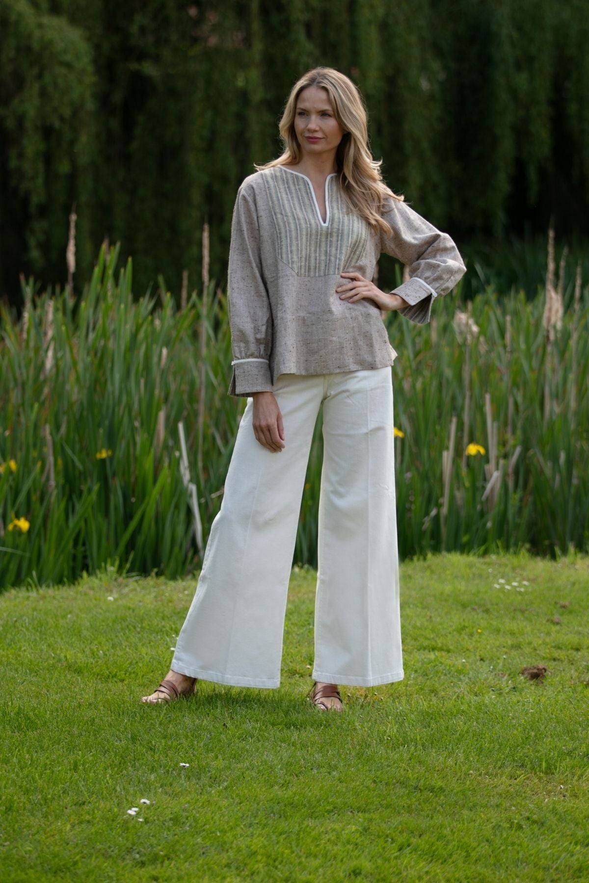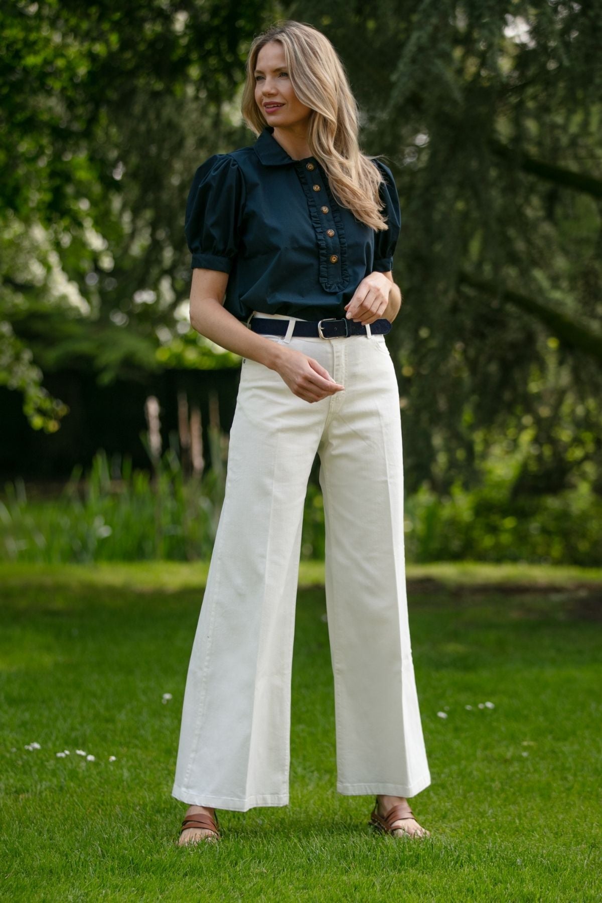 Your new favourite Spring Summer white jeans. You will love the style and fit of these amazing palazzo jeans which can be styled up or down as you please.