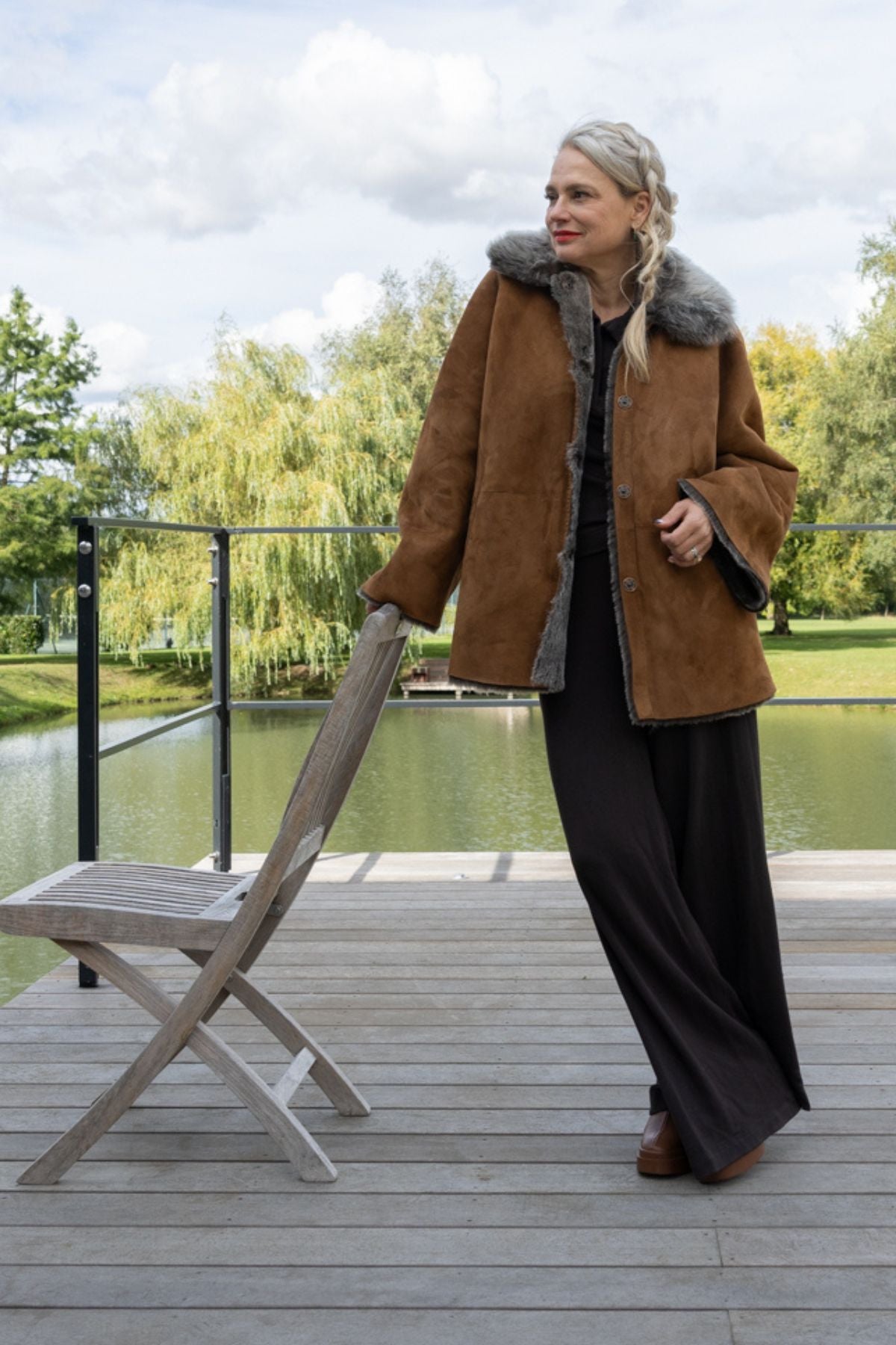 Luxury and oversized in fit, the deep luxurious collar feels so beautiful when you want to feel cozy and wrapped up.