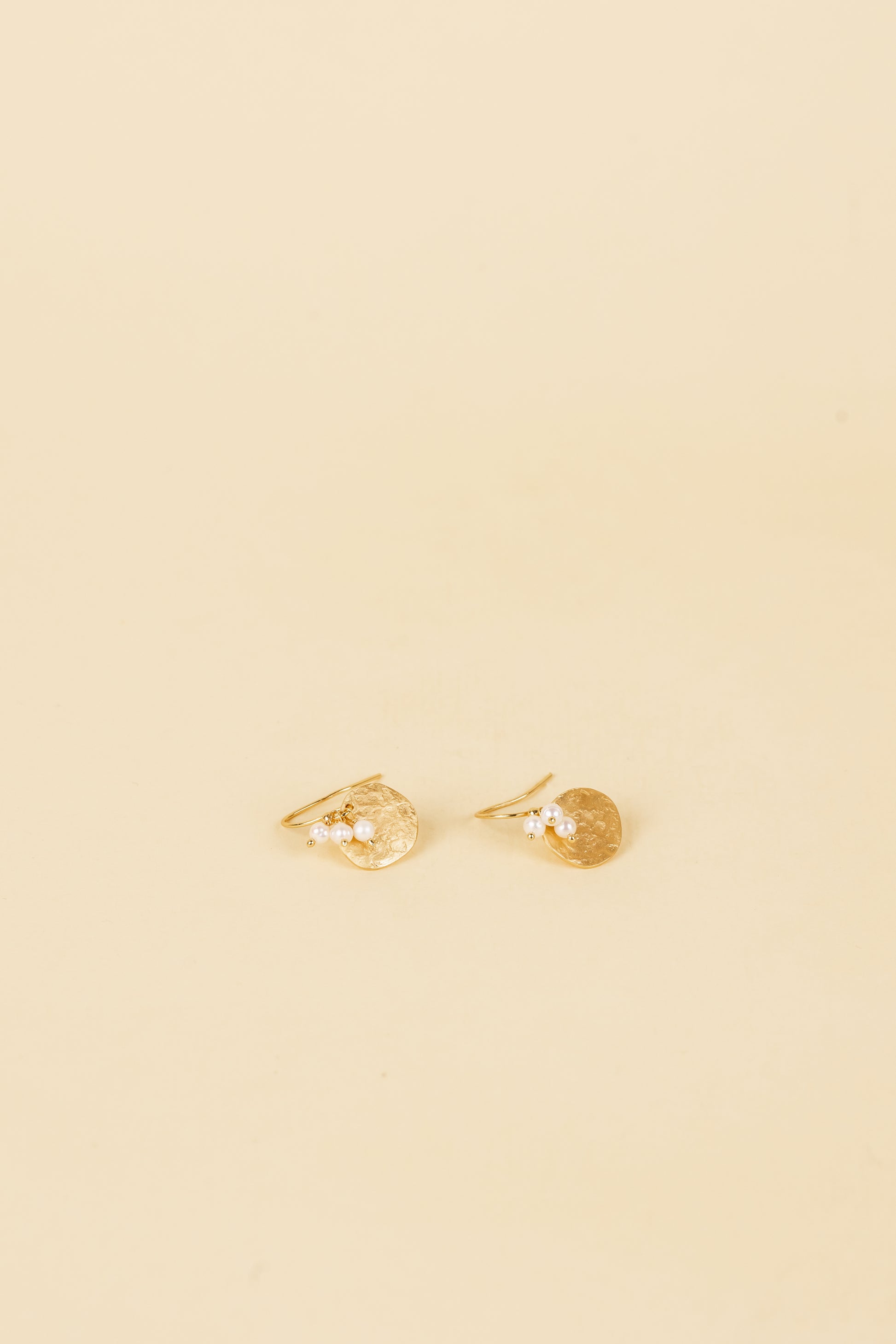Fall in love with these beautiful earrings which are made with 18 karat gold inlay and complete with two small beautiful little floating pearls on a brass base.
