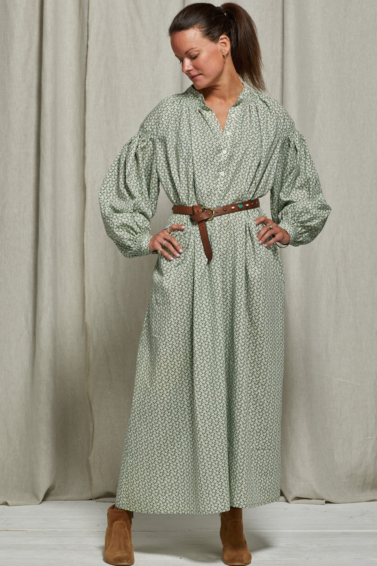 The Erika Dress is a beautiful loose fitted cotton shirt style, wardrobe essential which is available in this stunning soft green/camel/ mint print.